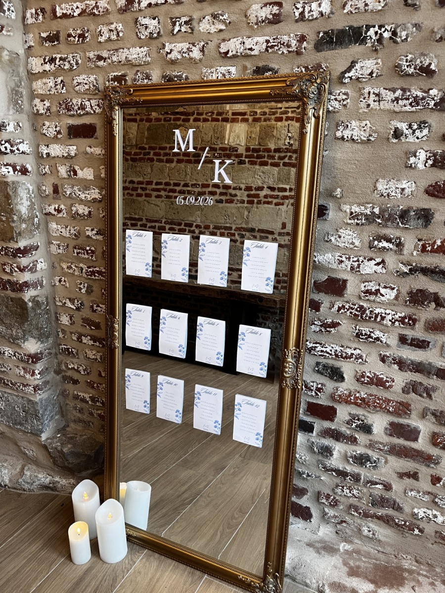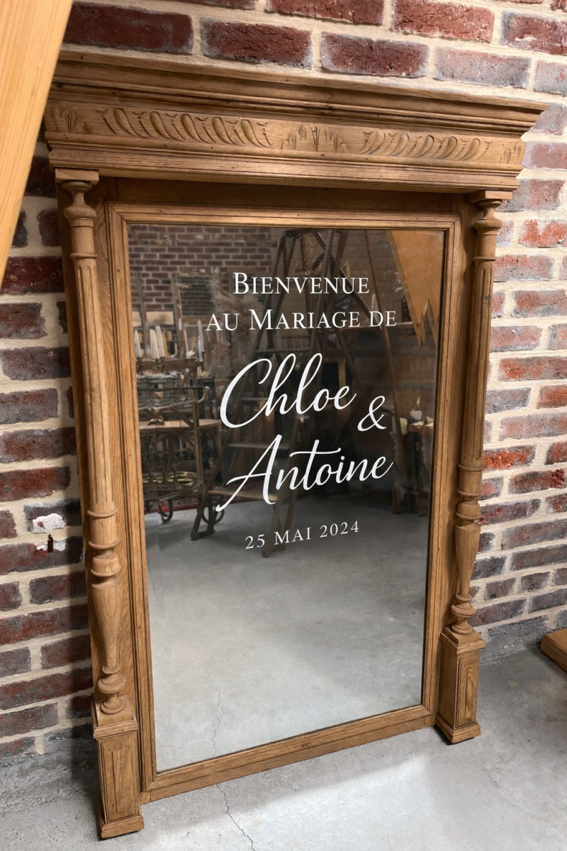 Apportez une touche d’élégance et de raffinement à votre événement avec ce miroir psyché. Avec son cadre doré au style chic et intemporel, ce miroir est parfait pour accueillir un plan de table, un message de bienvenue ou simplement pour sublimer votre décoration. Placé à l’entrée de votre salle ou dans un espace photo, il crée une ambiance élégante et chaleureuse.